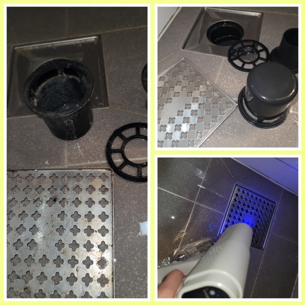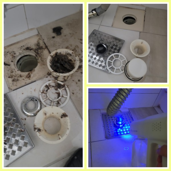 에어컨청소 세탁기청소 건조기청소 후 화장실 정리 및 배수구 청소와 자외선살균소독을 진행하고있습니다.