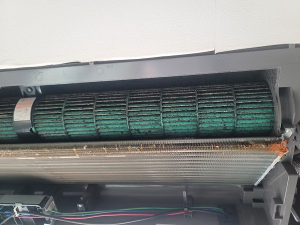 에어컨청소를 위해 완전분해후 오염상태를 보며 효율적인있는 약품을 선택합니다
